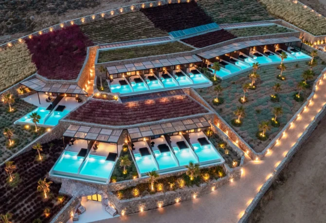 Mega mansions in Mykonos are two luxurious properties that guarantee the vacation of a lifetime for up to 13 deluxe travelers on each villa. Both of the villas are offering unique Aegean Sea views, inimitable style, privacy and top home comforts combining art and ultimate design. Each villa has 5 deluxe en-suite bedrooms and 1 master room with private outdoor pool.